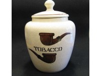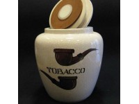 Vaso porta tabacco in ceramica bianca con crakle di grosse dimensioni, munito di umidificatore. Altezza 210 mm, diametro 150 mm, diametro bocca vaso 95 mm