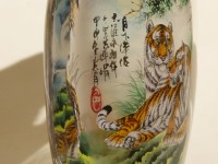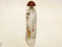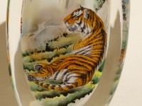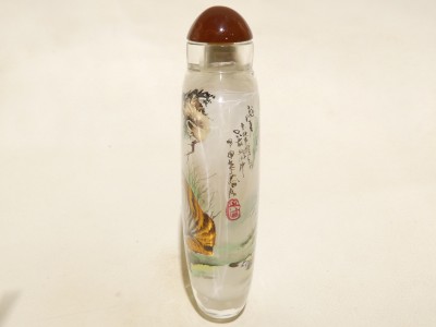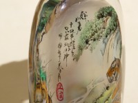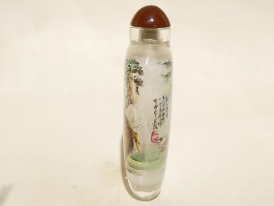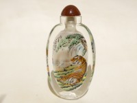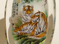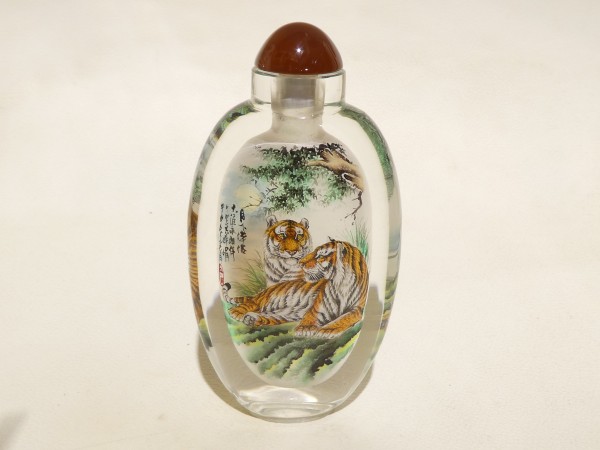 Grande porta tabacco da fiuto in vetro di manifattura cinese, dipinto dall'interno con miniature di tigri di fine esecuzione.