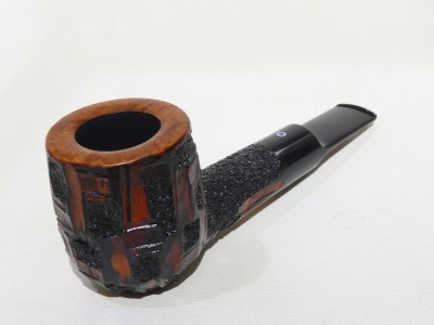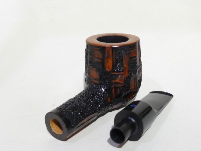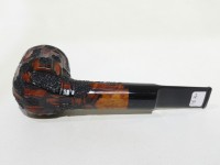 Pipa Ardor serie METEORA con tipica finitura scolpita e classico doppio colore: nero superficiale e rosso di sottofondo. La pipa è una Billiard con bocchino in metacrilato nero sellato e filtro 9 mm.