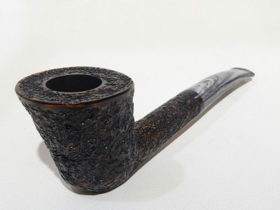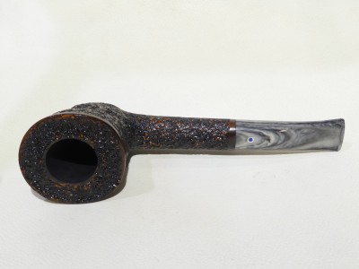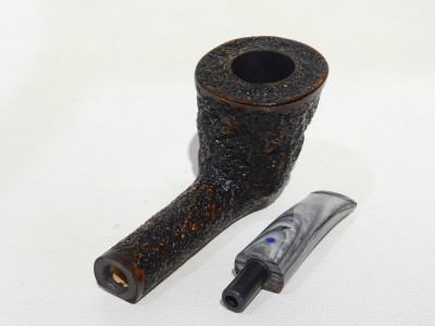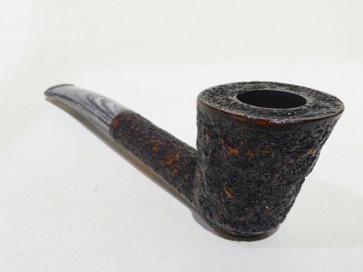Pipa Ardor serie URANO modello Free Hand Dublin con finitura rusticata e doppia colorazione: rosso di sottofondo e nero superficiale. Bocchino in metacrilato variegato grigio non sellato