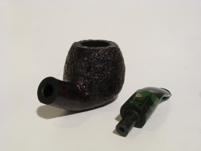 ASHTON BRINDLE XXX mod. half bent chubby Apple dalla finitura sabbiata, con colore bruno rossastro. Anno di fabbricazione 2018 (218). Bocchino in ebanite ripple sellato variegato verde/nero.