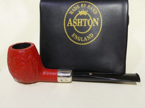 Pipa Ashton serie CLARET XX mod. Army Apple dalla finitura sabbiata e con colore rosso. Anno di fabbricazione 2024 (224). Bocchino in ashtonite nera montato con flock in argento.