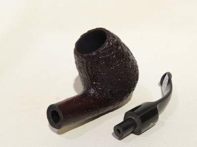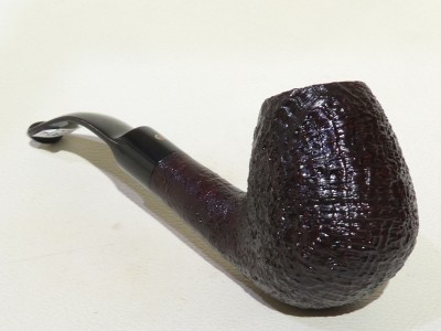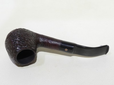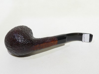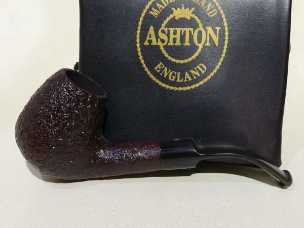 Pipa Ashton serie PEBBLE GRAIN XX modello bent Billiard dalla finitura sabbiata, con colore bordeaux scuro. Anno di fabbricazione 2019 (19). Bocchino in ashtonite nera sellato.