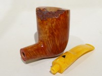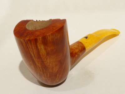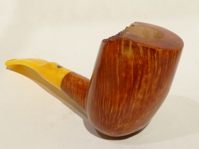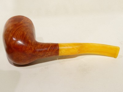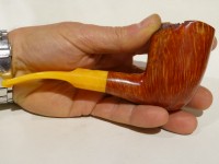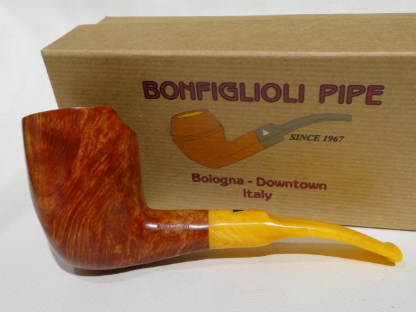 Pipa Bonfiglioli serie FREE FORM modello free hand bark top Dublin dalla finitura liscia e colore rossastro. Bocchino in metacrilato simil ambra sellato.