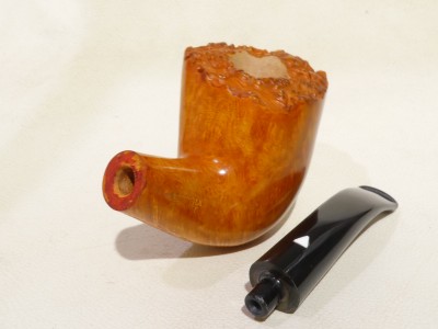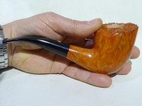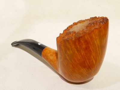 Pipa Bonfiglioli serie FOR COLLECTORS 2025 modello Free Hand bark top dalla finitura liscia e colore arancione chiaro. Bocchino in metacrilato nero non sellato.