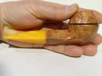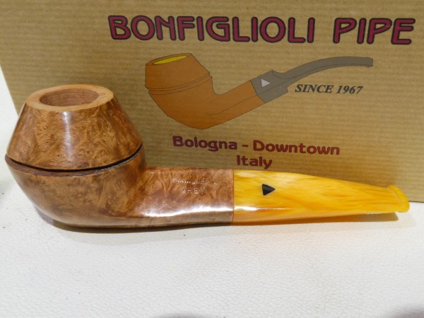 Pipa Bonfiglioli serie GREY modello Bulldog dalla finitura liscia e colore marrone chiaro. Bocchino in metacrilato simil ambra non sellato.