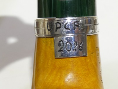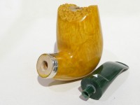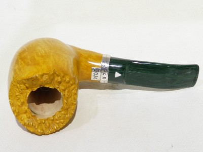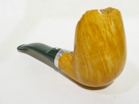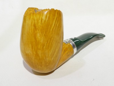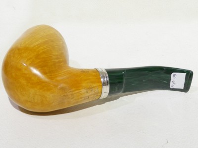 Pipa Bonfiglioli serie UPCA 2026 modello large bent Billiard bark top dalla finitura liscia e colore biondo. Bocchino in metacrilato simil malachite sellato; il cannello è adornato da ghiera in argento UPCA 2026