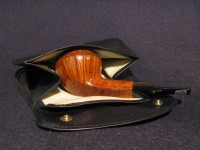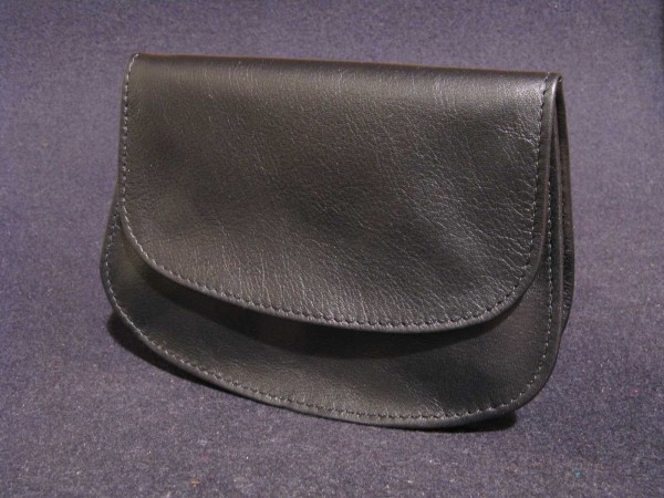 Porta tabacco a bisaccia in pelle di colore nero, con rivestimento interno in caucciu naturale. Dimensioni principali 135 x 90 x 70 mm