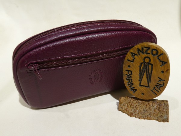 Lanzola Trousse porta pipe (2 posti) in pelle di Cervo di colore Bordeaux, con porta tabacco separabile, dotato di vano esterno porta oggetti a zip. Il porta tabacco internamente e di caucciu naturale, mentre il porta pipe tutto in pelle nera Bottalata.