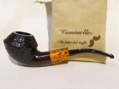 Pipa Caminetto 02 43 modello Billiard bark top oval shank dalla finitura liscia e colore naturale. Bocchino in cumberland non sellato.Â