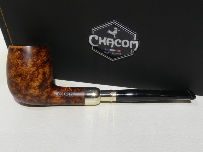 Pipa Chacom serie MATCH modello 296 Canadian, dalla finitura liscia e colore marrone laccato. Bocchino in metacrilato nero non sellato.