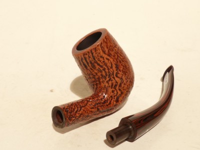 Pipa DUNHILL COUNTY modello 5102 bent Billiard, finitura sabbiata colore marrone spazzolato; bocchino in Cumberland non sellato.