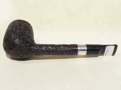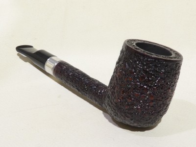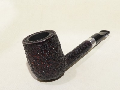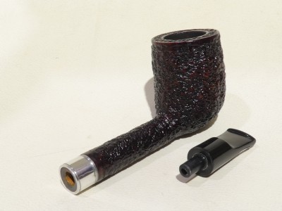 Pipa Ercole pipe by Raffaele Bogni, modello Lovat dalla finitura rusticata e colore bordeaux scuro. Bocchino in metacrilato nero sellato; il cannello è adornato da ghiera in metallo bianco.
