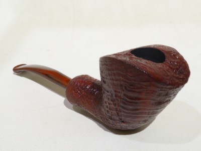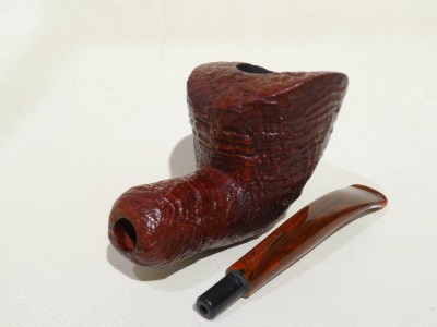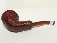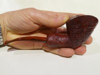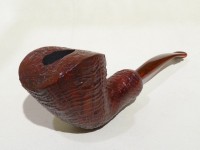 Pipa Ercole pipe by Raffaele Bogni, modello 1/4 bent Free Hand dalla finitura sabbiata e colore marrone rossastro. Bocchino in metacrilato variegato cumberland montato tipo army.