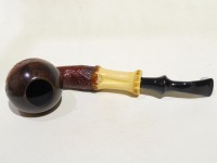 Pipa Ercole pipe by Raffaele Bogni, modello bent Apple con cannello in bamboo dalla finitura sabbiata e colore marrone. Bocchino in metacrilato nero fancy montato tipo army.