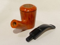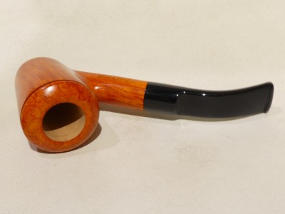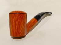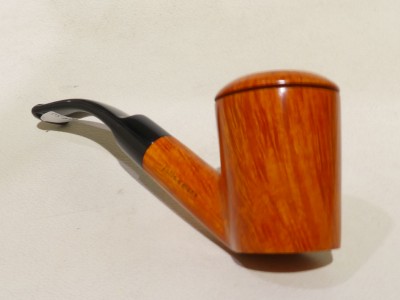 Pipa Fabrizio Romeo serie F modello bent Stand Up, dalla finitura liscia fiammata e colore arancione chiaro. Bocchino in metacrilato nero sellato.