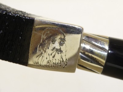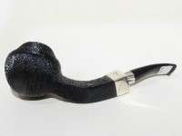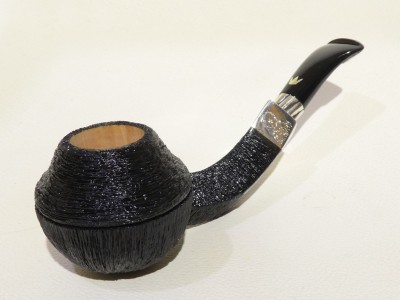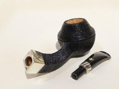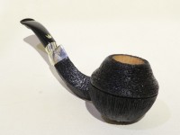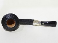 Pipa Fiamma di Re serie RHODESIART EPICA modello Free Hand Rhodesian dalla finitura rusticata pettinata e colore nero. Bocchino in metacrilato nero montato tipo army con doppia ghiera in argento con incisa Leonardo e il Cannone.