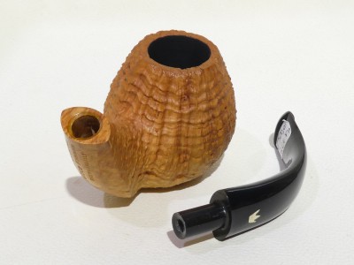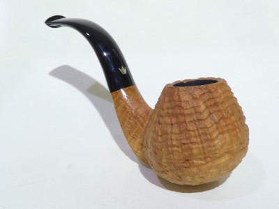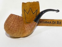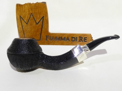 Pipa Fiamma di Re serie Celtica Fiammata modello full bent Apple dalla finitura sabbiata ring grain e colore naturale. Bocchino in metacrilato nero non sellato.