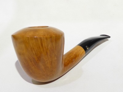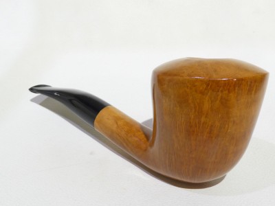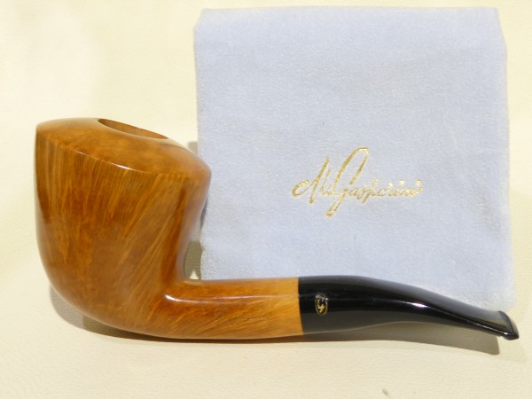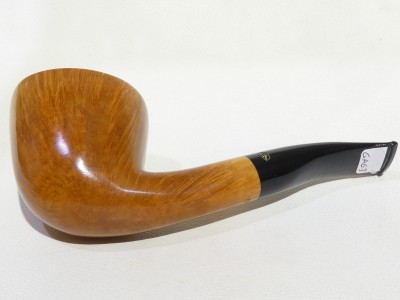 Pipa Gasparini FATTA A MANO, modello half bent Dublin di grandi dimensioni dalla finitura liscia fiammata e colore naturale. Bocchino in metacrilato nero non sellato con filtro 9 mm. Pipa di vecchia manifattura, risalente agli anni 80/90.