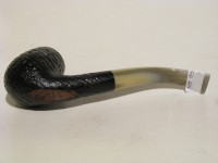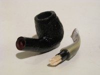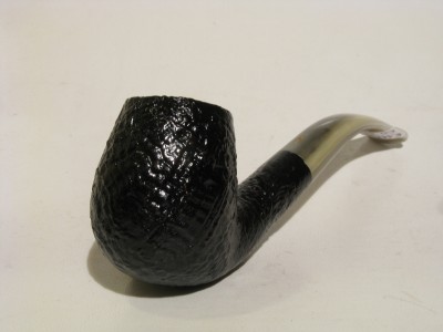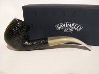 Pipa Savinelli serie COOKTAIL modello 602 bent Billiard dalla superficie sabbiata e colore nero. Bocchino in metacrilato variegato simil corno con filtro 9 mm. Le teste sono quelle selezionate anche per le Punto Oro.