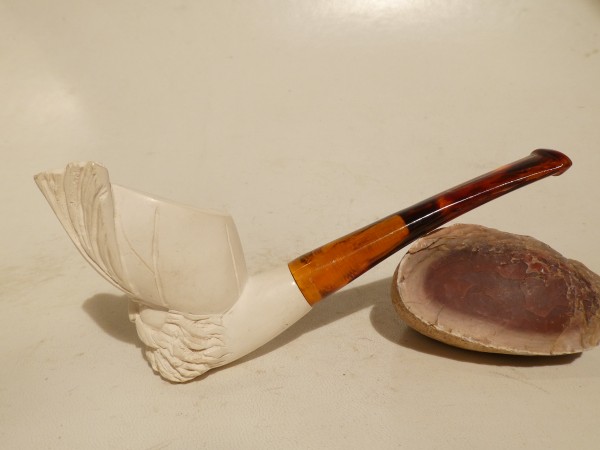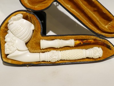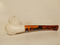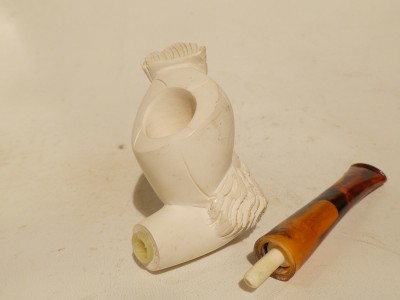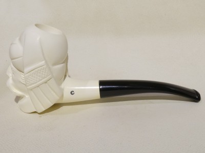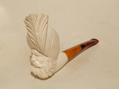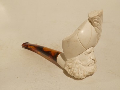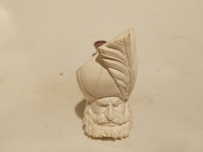 Pipa in schiuma turca raffigurante personaggio Ottomano di  piccole dimensioni; bocchino in bakelite simil ambra non sellato.Â