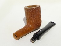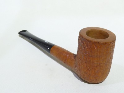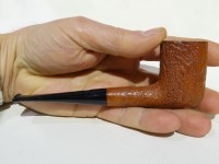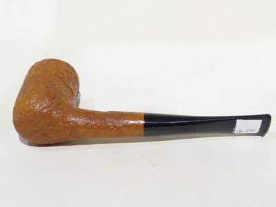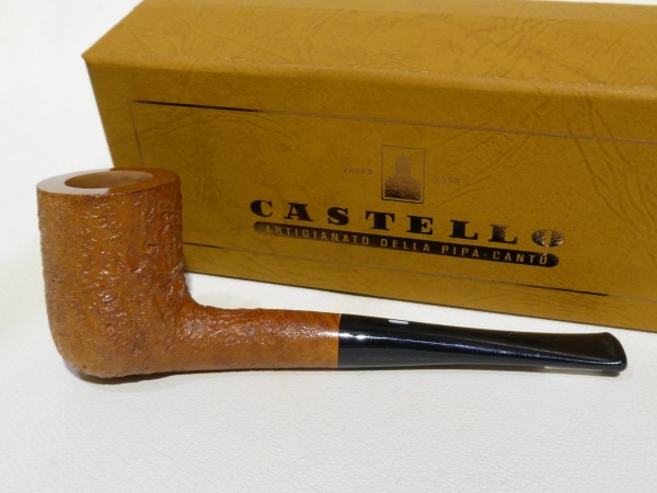 Pipa Castello serie Old Antiquari KKKK modello Billiard/Chimney dalla finitura sabbiata e colore arancione chiaro ambrato. Bocchino in metacrilato nero non sellato.