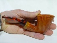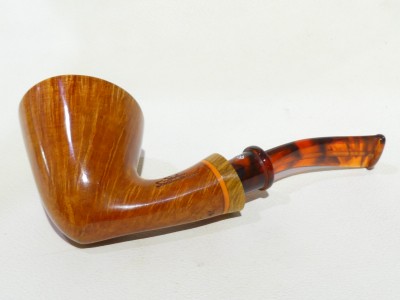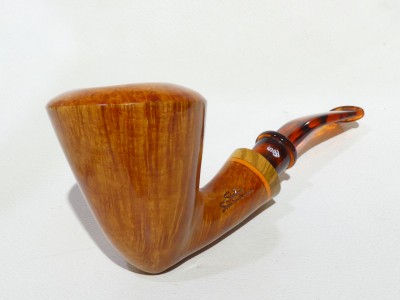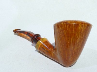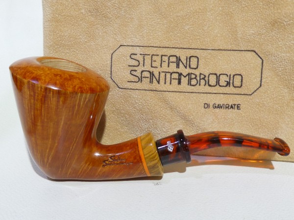 Pipa Santambrogio serie XX Major, modello half bent Dublin dalla finitura liscia fiammata e colore arancione chiaro. Bocchino in metacrilato simil ambra fancy.
