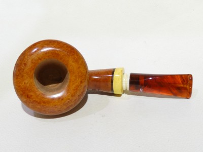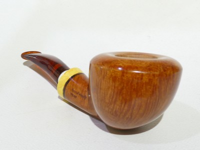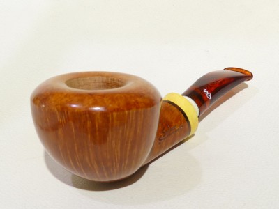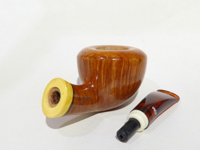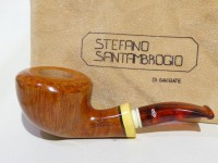 Pipa Santambrogio serie XX Major, modello half bent Dubli/Potn dalla finitura liscia fiammata e colore arancione chiaro. Bocchino in metacrilato simil ambra non sellato; il cannello è adornato da inserto in legno di bosso.