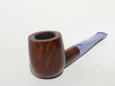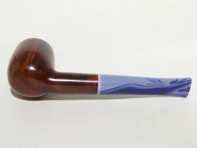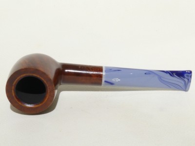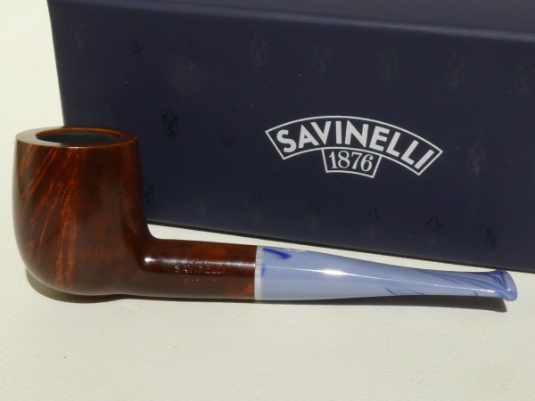 Pipa Savinelli serie OCEANO modello 106 dalla finitura liscia e colore bordeaux scuro. Bocchino in metacrilato variegato azzurro non sellato con filtro 9 mm.