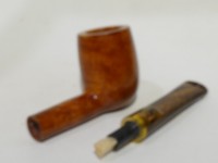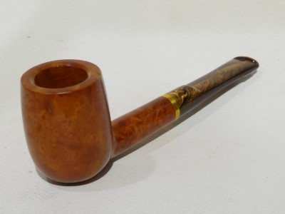 Pipa Savinelli serie WHISKY mod. 110 Billiard dalla finitura liscia e colore arancione chiaro ambrato. Bocchino in metacrilato marrone con riflessi dorati non sellato, con filtro 6 mm.