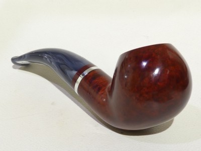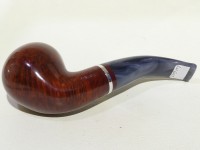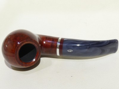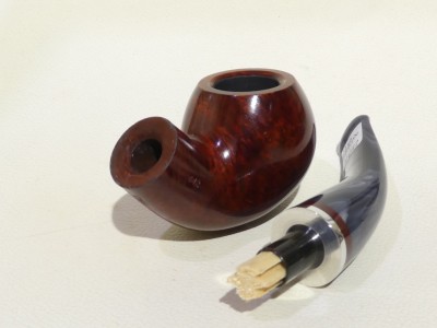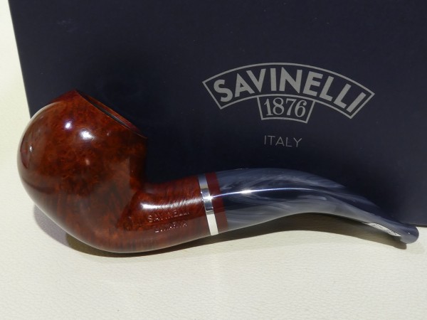 Pipa Savinelli serie LUNARIA modello 642 bent chubby Apple dalla finitura liscia e colore rosso scuro. Bocchino in metacrilato variegato grigio non sellato con filtro 9 mm.