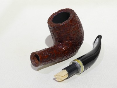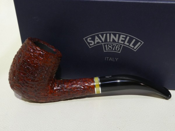 Pipa Savinelli serie OSCAR modello 606 KS bent Billiard dalla finitura rusticata e colore marrone rossastro. Bocchino in metacrilato nero non sellato con filtro 9 mm.