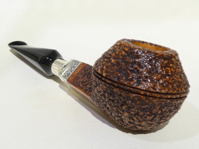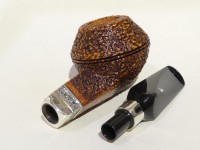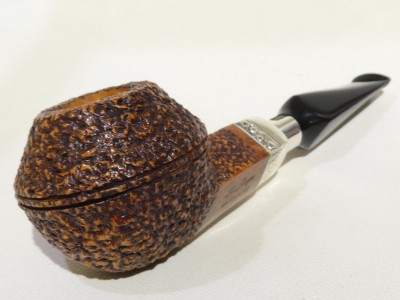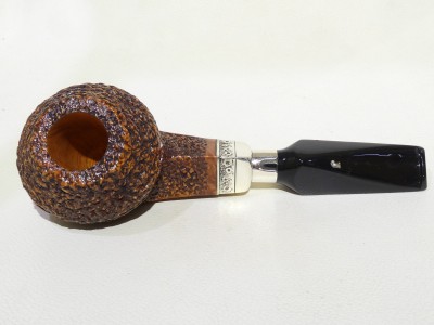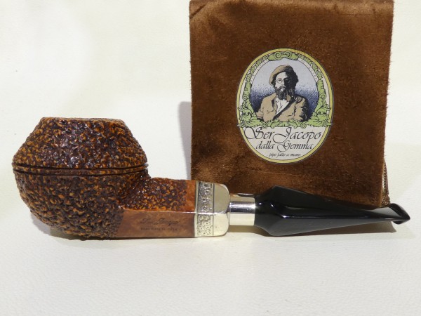 Pipa Ser Jacopo serie SENECTA HISTORICA modello straight Rhodesian dalla finitura rustica e colore marrone. Bocchino in metacrilato montato con spigot in argento e filtro 9 mm.