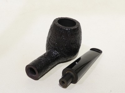 Pipa Dunhill, serie SHELL BRIAR modello 5101 APple, finitura sabbiata con classico doppio colore: rosso sottofondo e nero superficiale. Bocchino in ebanite nera non sellato.Â