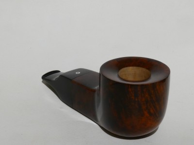 Pipa Talamona by Paolo Croci, serie Reverse Calabash modello chubby Pot, finitura lucida e colore marrone. Bocchino in metacrilato nero sellato.