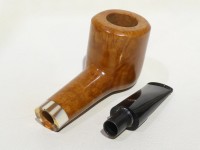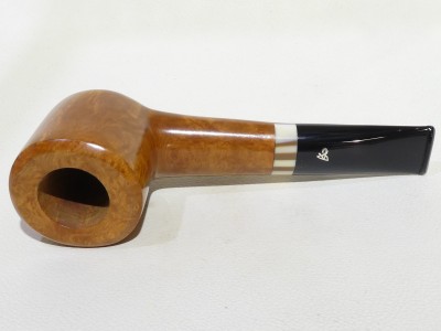 Pipa L.Viprati serie 1 Quadrifoglio modello Billiard Stand Up oval shank dalla finitura liscia e colore naturale. Bocchino in metacrilato nero non sellato con filtro 9 mm.