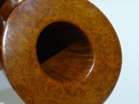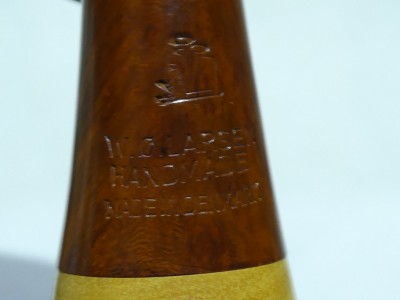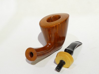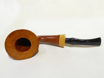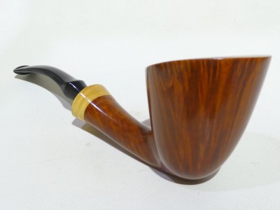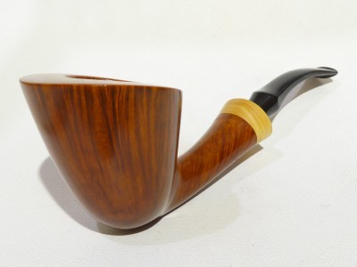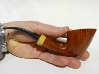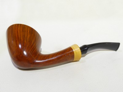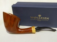 Pipa WØ Larsen serie Straight Grain Smoking Chair by Teddy Knudsen modello half bent Dublin dalla finitura liscia fiammata e colore arancione ambrato scuro. Bocchino in ebanite nera fancy con ghiera in legno di bosso. La pipa risale alla produzione degli anni '80.